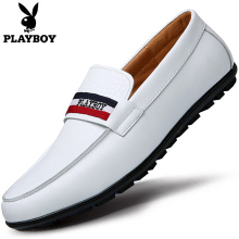 花花公子男鞋白色休闲鞋豆豆鞋男春夏季2017真皮韩版懒人鞋子百搭