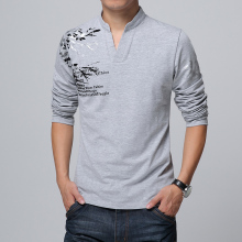 男士印花体恤衫韩版休闲修身V领t恤男加大码纯棉T恤打底衫潮夏装