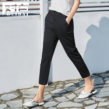 对白2017春夏新款铅笔裤 简约纯色九分休闲裤女 时尚百搭修身裤子