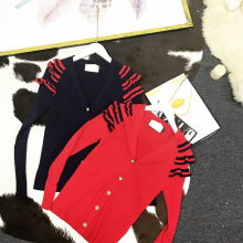木耳针织衫女2017春季新品撞色气质修身V领珍珠扣长袖外套