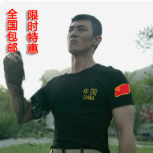 男士夏季军绿色军装体血刺绣国旗中国短袖半袖特种兵t恤军迷衣服