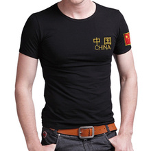 包邮夏季新品男士短袖莱卡棉刺绣中国国旗特种兵修身T恤军迷t恤