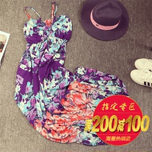 4折清仓〖杰〗波西米亚显瘦雪纺海边度假沙滩裙吊带连衣裙长1Q007