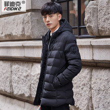 菲迪克冬季新款棉衣男中长款修身外套男士青年连帽棉袄加厚棉服潮