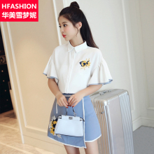 连衣裙夏季新款时尚韩版显瘦刺绣衬衫套装女百搭气质休闲两件套女
