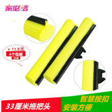 家必洁33CM卡扣胶棉拖把头智慧按扣替换装滚轮吸水拖把海绵头配件