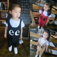 女童春装2017新款套装短袖女宝宝夏装阔腿裤套装纯棉个性1235周岁