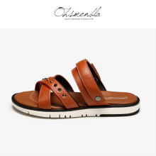 凉鞋男夏季新款休闲柳钉真皮沙滩鞋男 防滑透气真皮日常凉鞋男