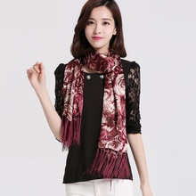 韩版女士纯羊毛围巾礼品围巾长款空调披肩两用秋冬季印花围脖年会