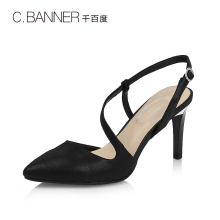 C.BANNER/千百度2017春夏新品羊皮雅致高跟中空半凉鞋A7257824