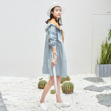 风衣女中长款2017春秋新款简约宽松连帽百搭休闲春季纯棉薄款外套