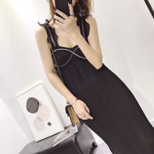 大牌吊带内搭时尚打底裙女百褶荷叶边超长裙打底黑色连衣裙小黑裙