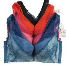 美背心式蕾丝大码文胸女士内衣深V超薄款全罩杯胖mm大胸显小夏季