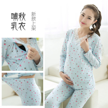 新款纯棉孕妇秋衣秋裤套装产后哺乳家居服月子服托腹棉毛衫 春夏