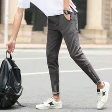夏季薄款九分裤男修身小脚牛仔裤男装青少年休闲裤学生弹力9分裤