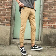 夏季薄款九分裤男士纯色卡其休闲裤男装青少年束脚裤学生哈伦裤子