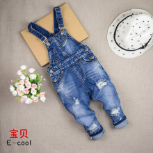 2017春秋款儿童裤子男童女童破洞牛仔背带裤长裤小童修身小脚2260