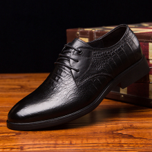 朗耐头层牛皮鳄鱼纹商务休闲皮鞋男士真皮软底韩版潮流男鞋子系带