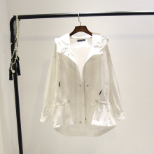 春季新品韩版时尚背后刺绣字母连帽风衣女中长款收腰外套休闲大衣
