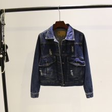 修身显瘦短款牛仔外套女2017春季新品水洗磨破长袖牛仔上衣夹克