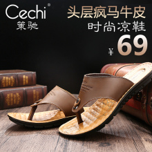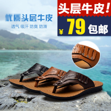 2016新款夏季男士真皮凉鞋男韩版沙滩鞋人字夹趾人字拖透气潮皮拖