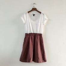 16女式夏装上身全棉撞色连衣裙甜美气质淑女拼接短袖中长款女