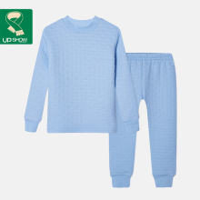 upshow儿童纯色打底套装 儿童保暖内衣套装压花宝宝内衣 夹棉套装