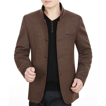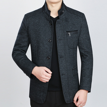 秋冬季新款男装中年男士夹克羊毛呢子加棉休闲外套立领爸爸装