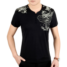 夏季中年男士短袖t恤潮男v领2017新款韩版修身纯棉帅气休闲polo衫
