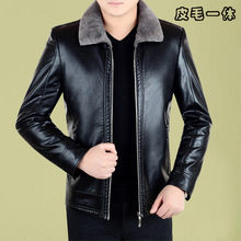 海宁皮毛一体男真皮皮衣夹克绵羊加绒加厚中年男士外套冬季爸爸装