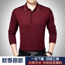 中年男士长袖t恤秋季装商务纯棉桑蚕丝中老年男装上衣体恤爸爸装