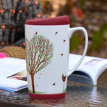 千度尚品 创意陶瓷杯子 简约特大号马克杯带盖 牛奶咖啡情侣水杯
