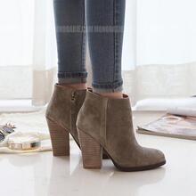 韩国女鞋代购17秋冬翻毛皮拉链粗高跟短靴欧美短靴齐踝马丁靴