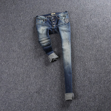 欧洲站2017秋冬新款时尚抓纹磨白水洗纯棉显瘦低腰小脚铅笔牛仔裤