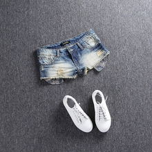欧洲站2017夏季新品女装潮流磨白破洞低腰时尚水洗牛仔超短裤热裤