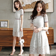 2017夏季新款韩版气质中长款a字裙女白色蕾丝收腰显瘦时尚连衣裙