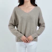 柔软不扎肤 大v领落肩袖慵懒女装纯羊绒针织衫