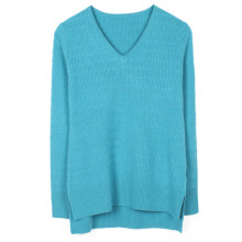 外销 品质女装鸡心领套头精纺纯羊绒衫v领 山羊绒套衫