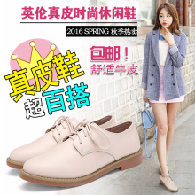 XMM春秋真皮英伦女鞋时尚女单鞋休闲鞋平跟平底牛津鞋系带小皮鞋