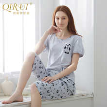 绮瑞睡衣女士夏季纯棉短袖七分裤套装大码家居服休闲薄款可外穿