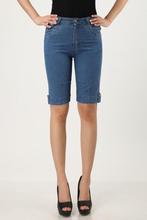 2017夏季薄款牛仔短裤中年妇女妈妈装高腰3分裤大码弹力直筒牛仔