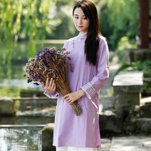 徽家 原创2017春秋季新款女士棉麻上衣中式改良唐装长袖盘扣外套