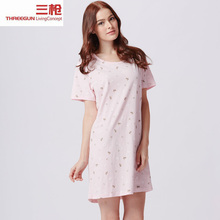 三枪家居服 女士夏季薄款休闲可爱纯棉圆领短袖短裙宽松睡裙70255