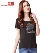 三枪T恤 女士大圆领舒肤透气吸汗舒木尔印花短袖大码打底衫 22098