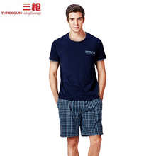 三枪男士夏季薄款纯棉圆领短袖短裤外穿家居休闲睡衣裤套装80957