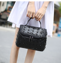 2017秋冬新款黑色铆钉小箱包复古医生包手提包潮流单肩包斜挎包女