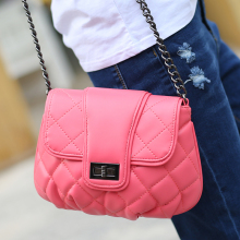 春夏新款甜美粉色菱格锁扣链条包单肩包斜挎包小包淑女手提包女包