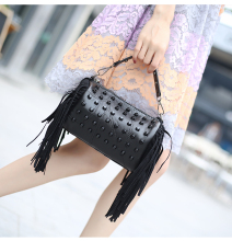 2017新款花色流苏性感欧美铆钉手拿包OL通勤个性手包女包单肩小包
