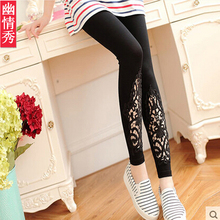 幽情秀春季打底裤女外穿薄款紧身裤黑色小脚裤修身显瘦高腰九分裤