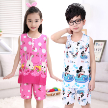 儿童棉绸睡衣薄夏宝宝背心短裤男童小童中大童无袖女童家居服套装